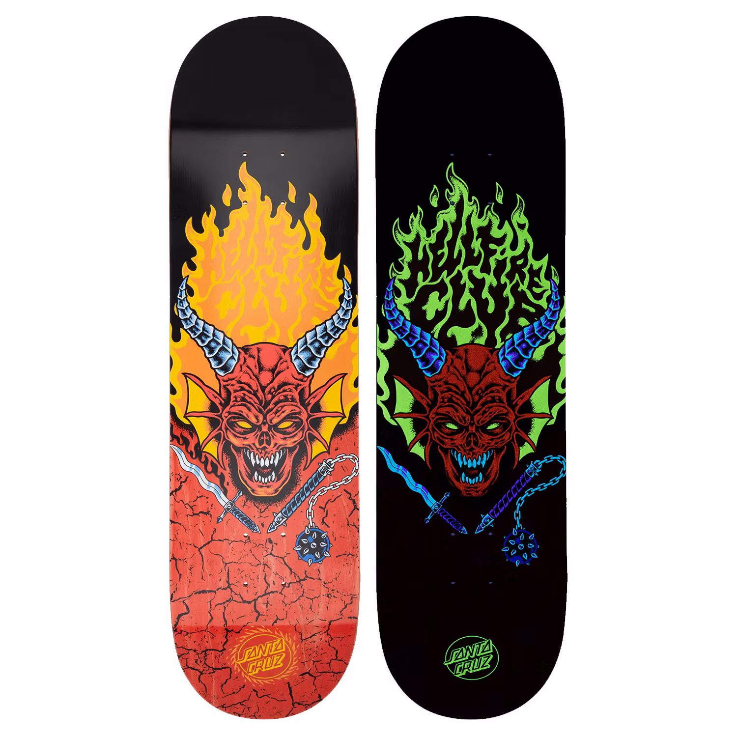The Santa Cruz x Stranger Things Hellfire Club 8.25" deck brings the iconic Hawkins D&D crew energy straight into your setup. Featuring multicolor glow-in-the-dark artwork, this deck reveals hidden elements when activated. Built on Santa Cruz’s popular 8.25" all-terrain shape, it’s ready for parks, street spots, ledges, or bowl sessions — and stands strong as a collectible crossover piece.