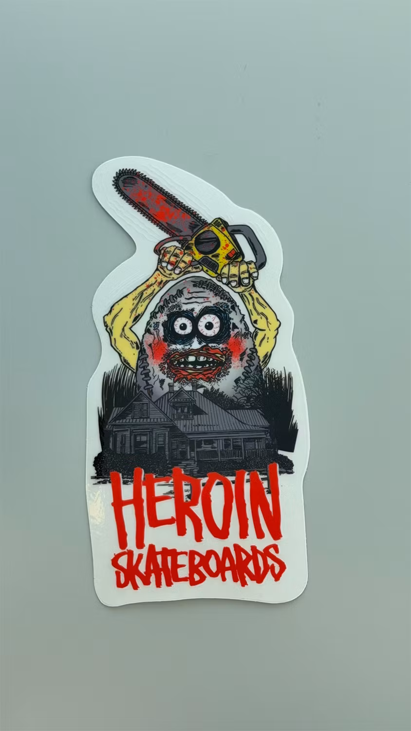 Sticker Heroin Skateboards Teegsas Chainsaw I lager. 50 kr Lägg i korgen Sticker Heroin Skateboards Teegsas ChainsawSize Width cm 8,5 Height cm 16,5 Backing clear