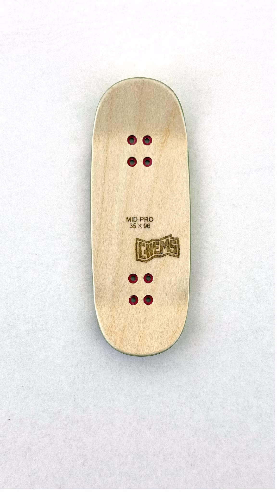 35mm x 96mm Pro maple construction, medium concave and Chems Skate ledgendary quality. Perfect for tech and street setups.