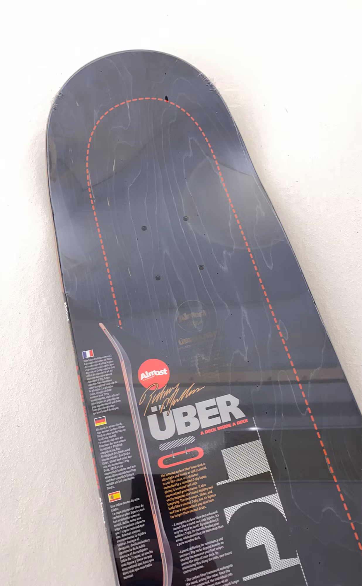 Uber Light has a deck inside a deck. The internal carbon fiber foam deck is ultra light and nearly as stiff as metal. It also vastly improves the lateral rigidity. It's lighter and has a supernatural pop that lasts far longer than normal decks.