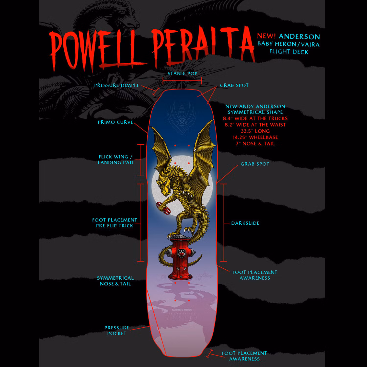 Powell•Peralta is proud to introduce Andy Anderson's new Baby Heron, Vajra Deck, the culmination of over a decade of evolutionary performance-driven design modifications, making this new all-terrain deck easier to ride, flip, and pop than standard “popsicle” designs, which haven't changed in thirty years. Andy focused on making every aspect of his skateboard functional, easy to ride and designed to wear into every skater’s performance-enhancing personal shape.