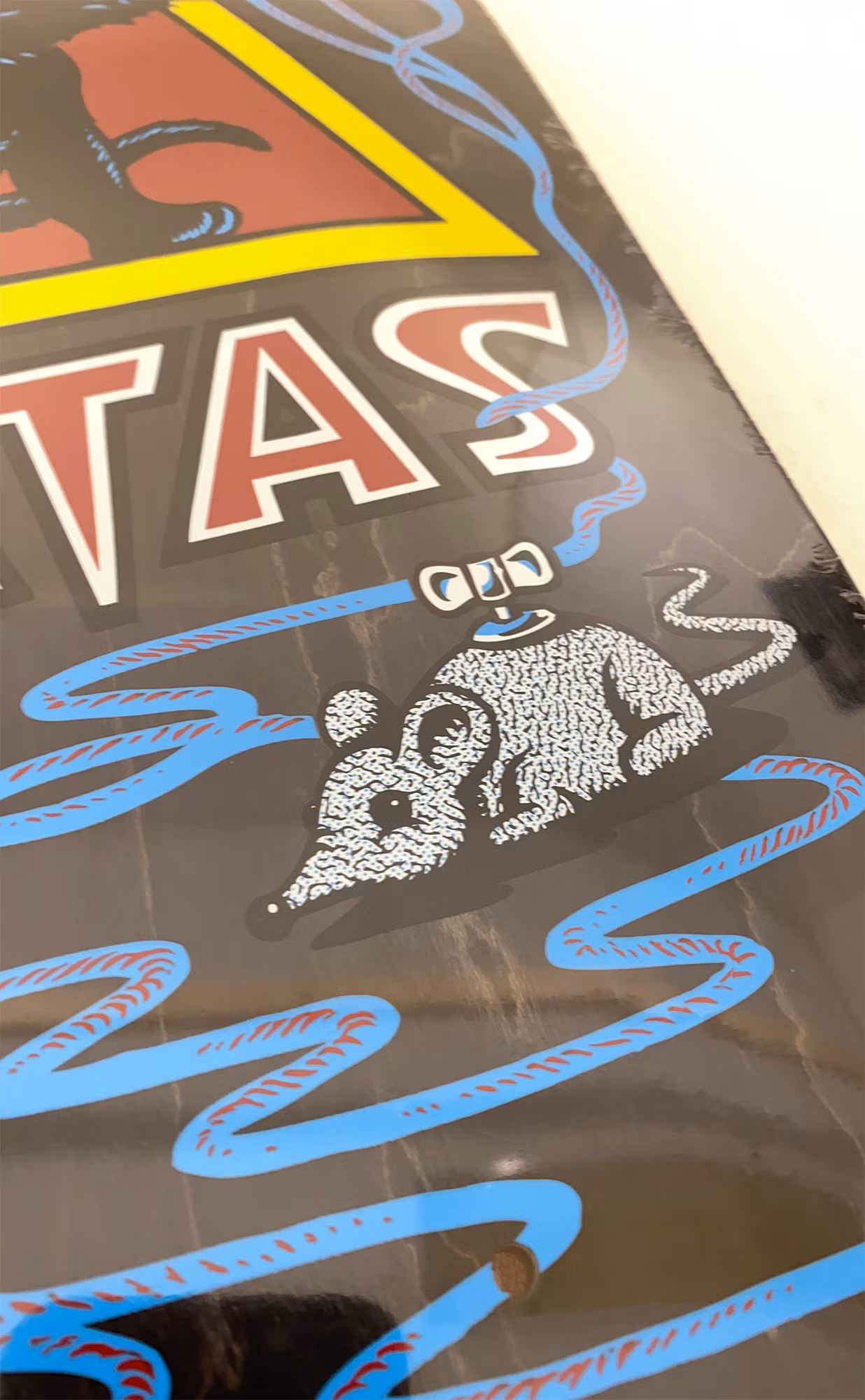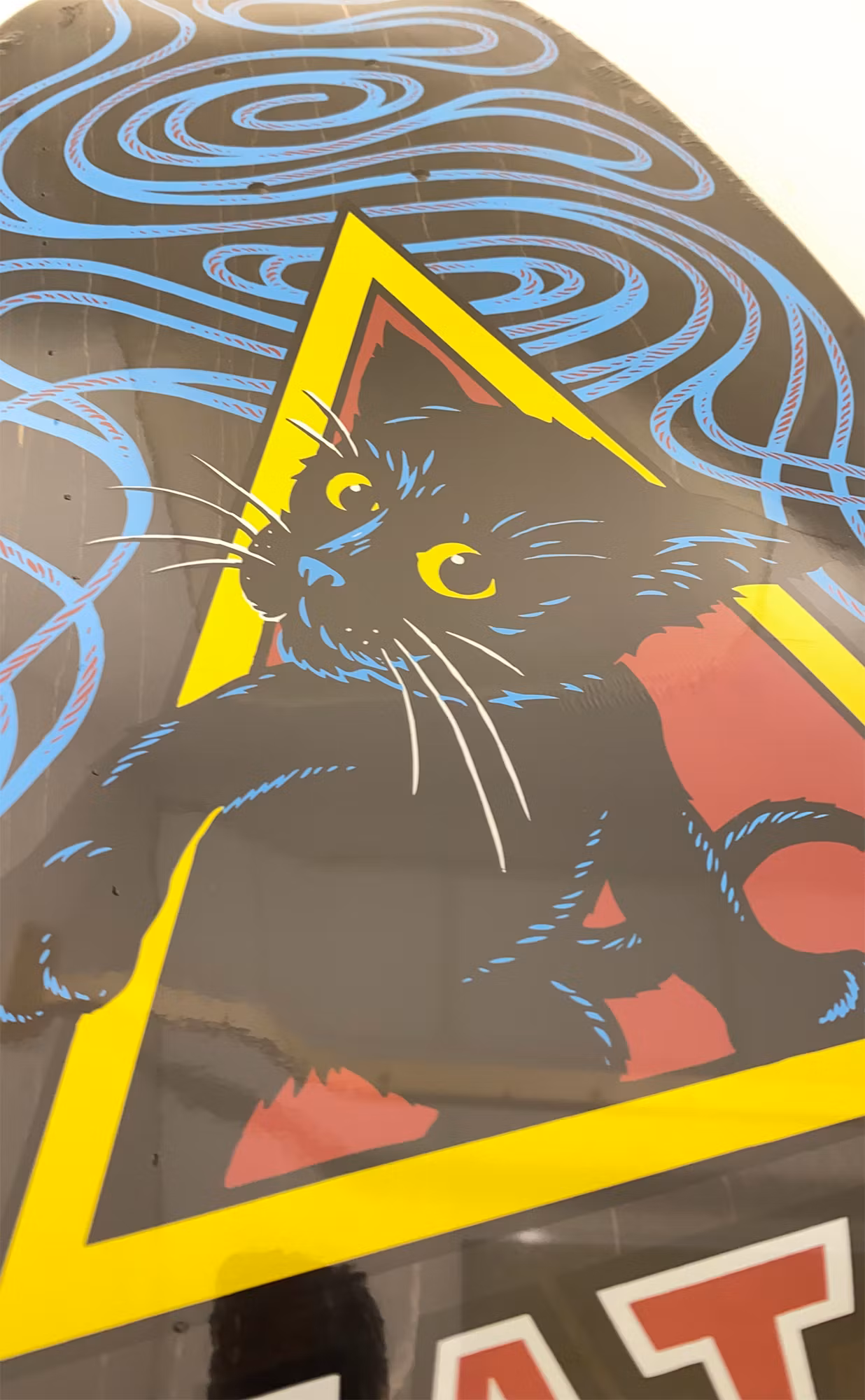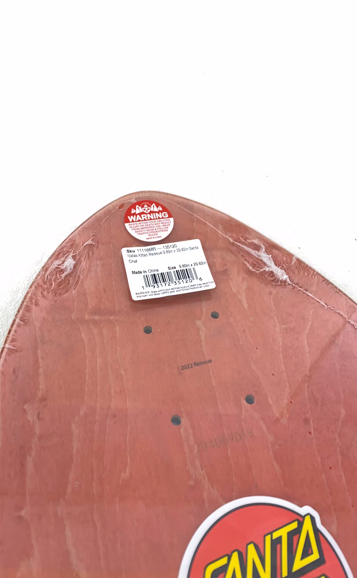 Santa Cruz Skateboards Natas Kaupas Kitten Reissue deck featuring spot gloss graphic print on 7 ply North American Maple pressed individually using epoxy making a strong, responsive deck with long lasting pop and consistent concave and kick.